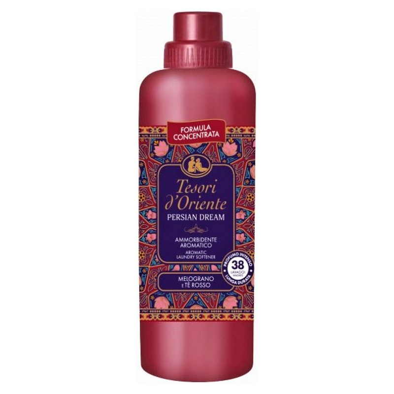 Vůně plná tepla a pohody! Aromatický avivážní prostředek "Persian Dream" od Tesori d'Oriente zajistí příjemně měkké prádlo a rozmazlí smysly tóny jasmínu, granátového jablka, červeného čaje a jantaru v perské zahradě.